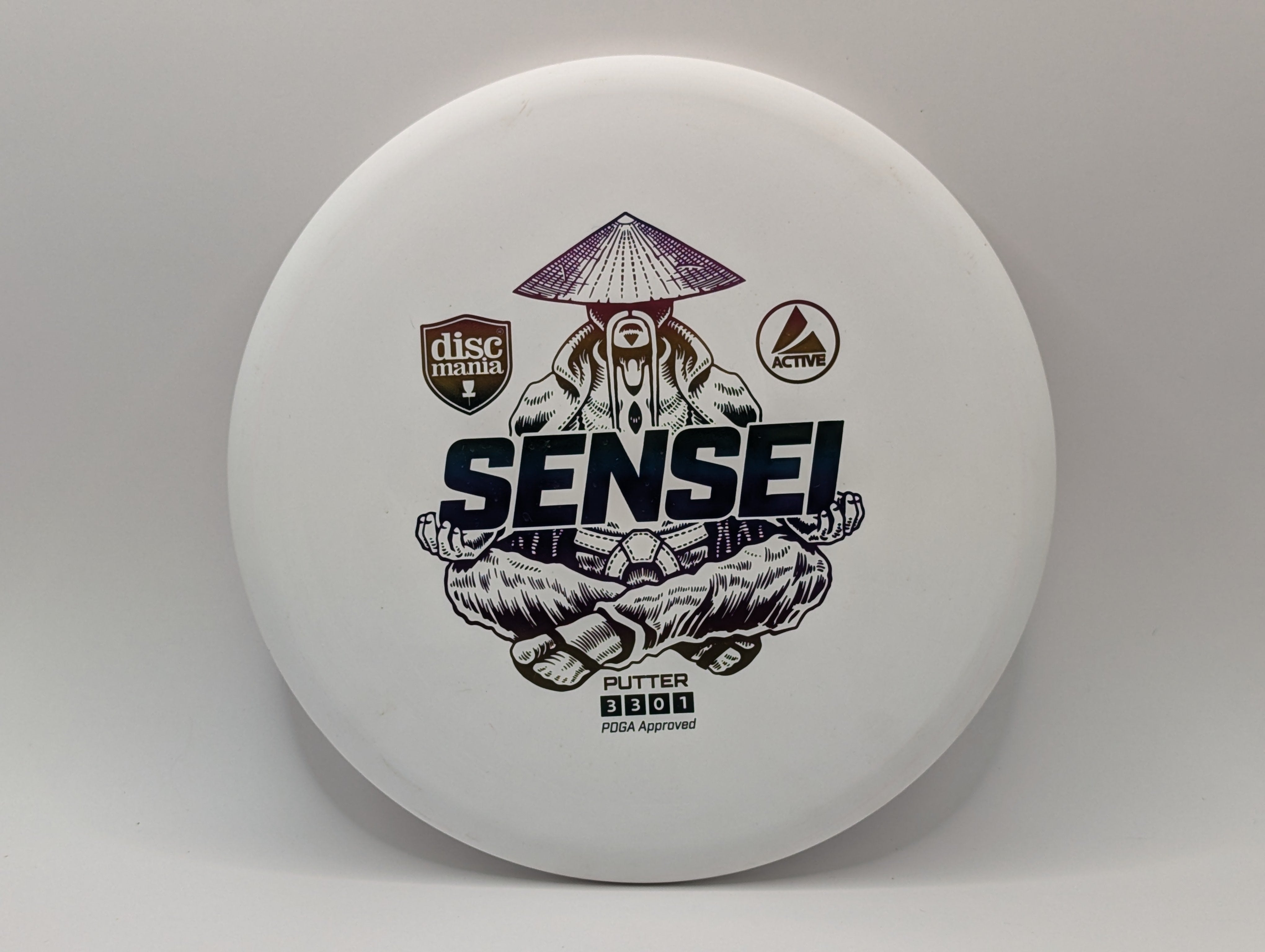 The Sensei is a low profile putter that fits well in any hand size. The disc is designed for all types of approach shots and putts. The flight of this disc is straight in high speeds and it offers a dependable fade as the speed and rotation slows down. Great choice for beginners and more experienced players alike!