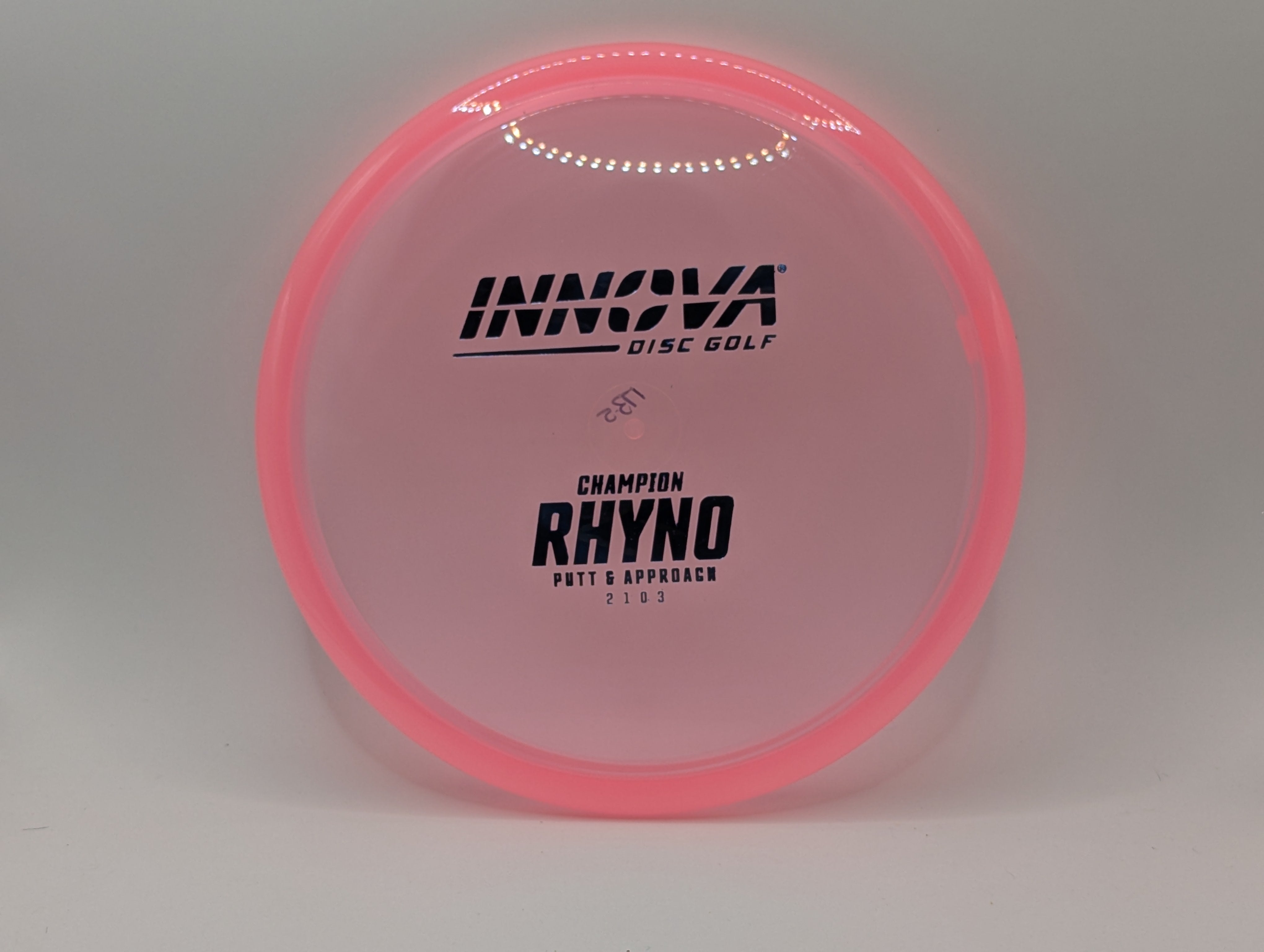 The Rhyno is an overstable putt and approach disc that can handle headwinds. Great for players with lots of throwing power as the Rhyno stops on a dime and stays close to the basket. It is a must have disc for short to medium up shots and putting into the wind.