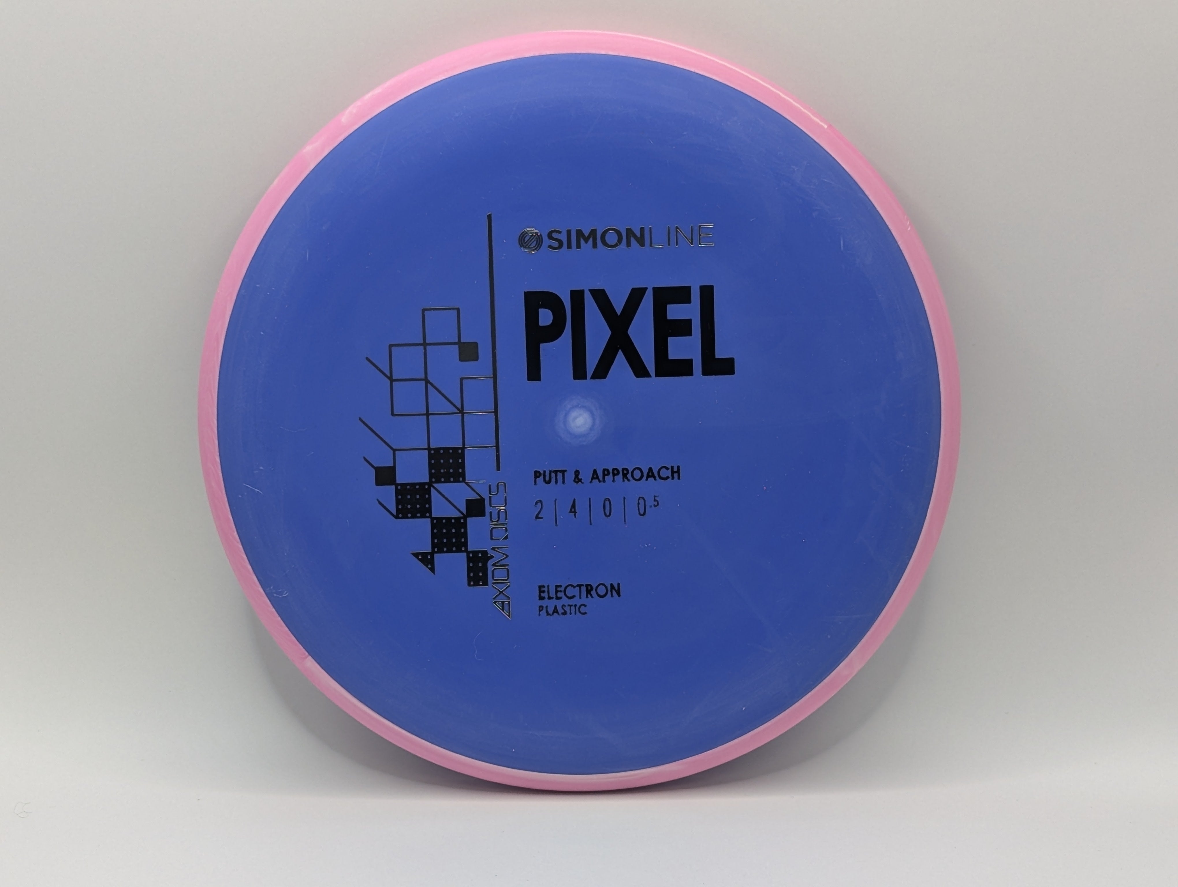 The second disc in the Simon Line is officially here, the Electron Pixel! The Pixel has a deep profile with a small micro bead, perfect for the smoothest possible release. Simon designed the Pixel to be an effortless putter, needing just a little bit of spin to glide right to the basket. Whether you’re a spin or push putter, the Pixel is an ideal putter for someone who wants a laser-straight flight.