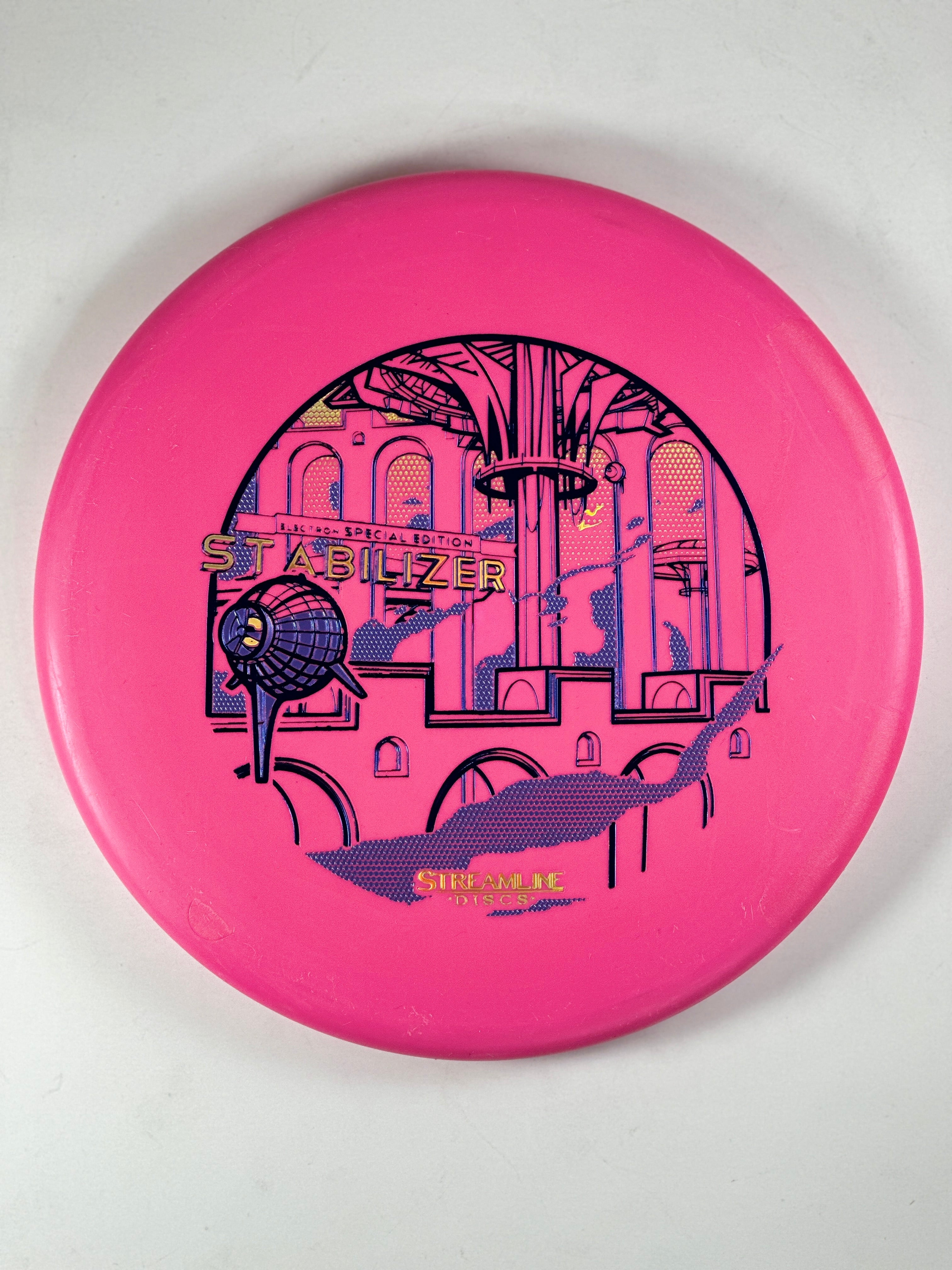 The Stabilizer is an overstable putter from Streamline Discs, making its debut in Streamline Neutron and Cosmic Neutron plastic. This is the second putter from Streamline Discs and is the overstable compliment to the Streamline Pilot. The Stabilizer has a similar hand feel and depth as the Neutron Pilot, but with a slightly raised shoulder and more pointed nose that produces a flatter and more stable putter. The Stabilizers defining flight characteristic is straight flights with minimal turn, into a strong finishing fade for point and shoot accuracy on the approach.