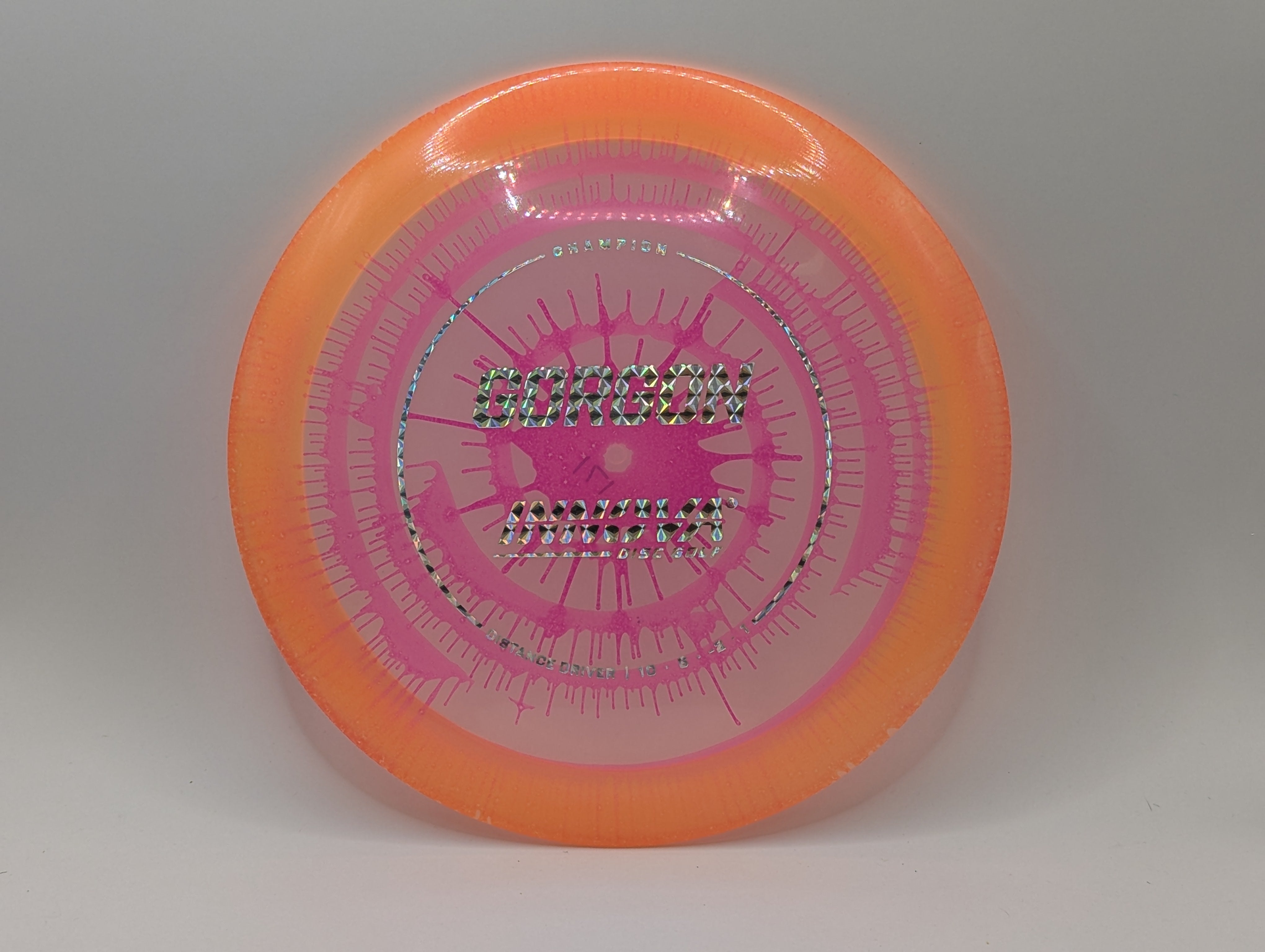 The Gorgon, a disc that merges the feel, precision, and ease of a Fairway Driver with the reach of a Distance Driver. Its flight? Arrow-straight glide with a steadfast fade, mirroring the Gorgon's unwavering gaze. Experience the legend—drive like a deity, conquer the course.