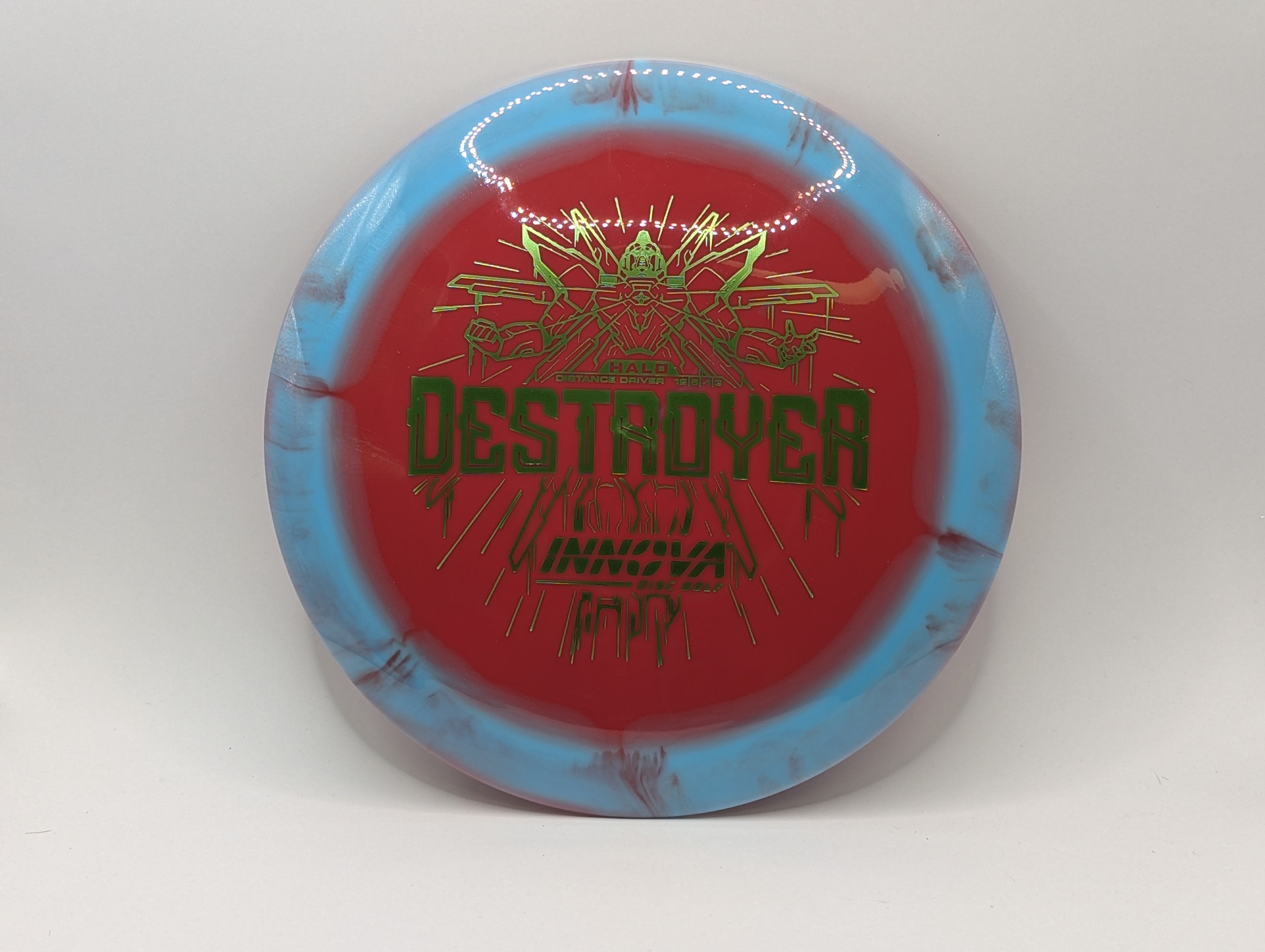The Destroyer is a very fast stable long distance driver. Great disc for sidearm throwers and those with lots of power. Can handle headwinds and throws with off axis torque. Not suggested for beginning players.