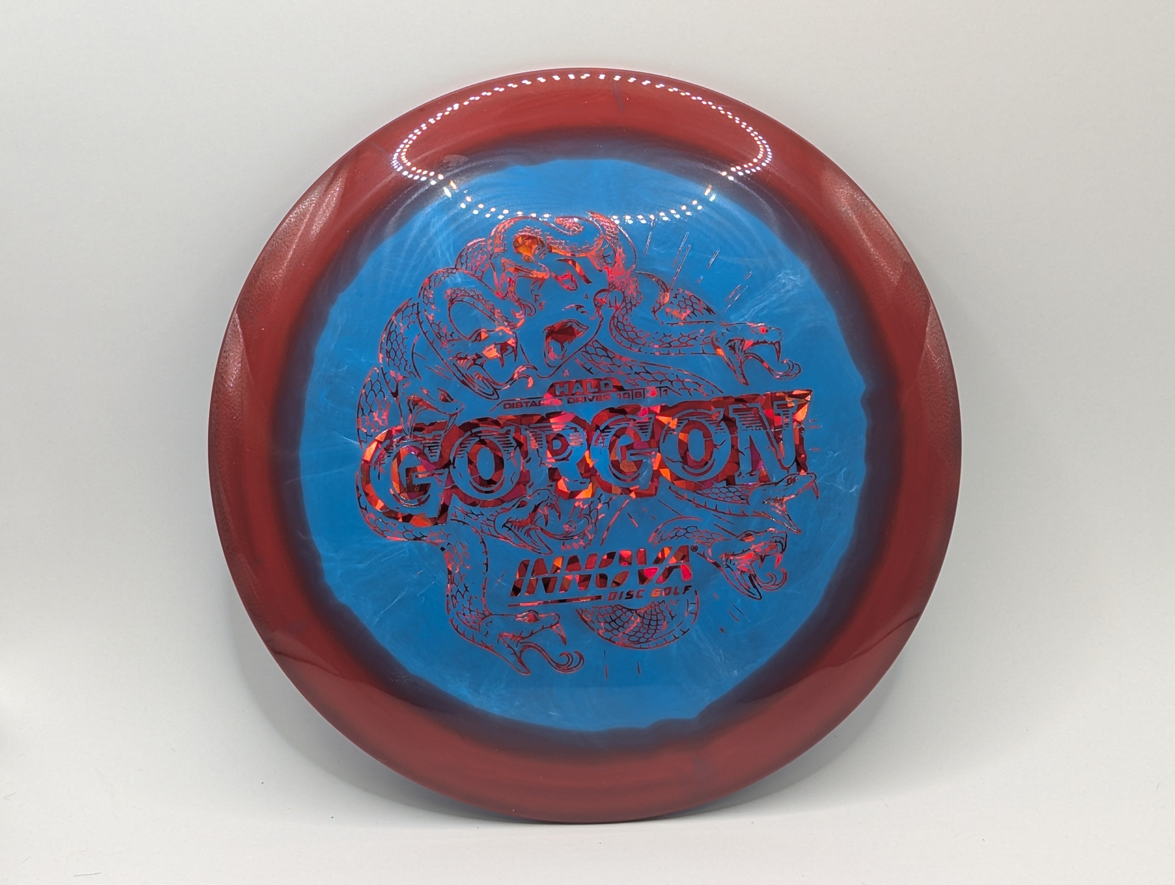 The Gorgon, a disc that merges the feel, precision, and ease of a Fairway Driver with the reach of a Distance Driver. Its flight? Arrow-straight glide with a steadfast fade, mirroring the Gorgon's unwavering gaze. Experience the legend—drive like a deity, conquer the course.