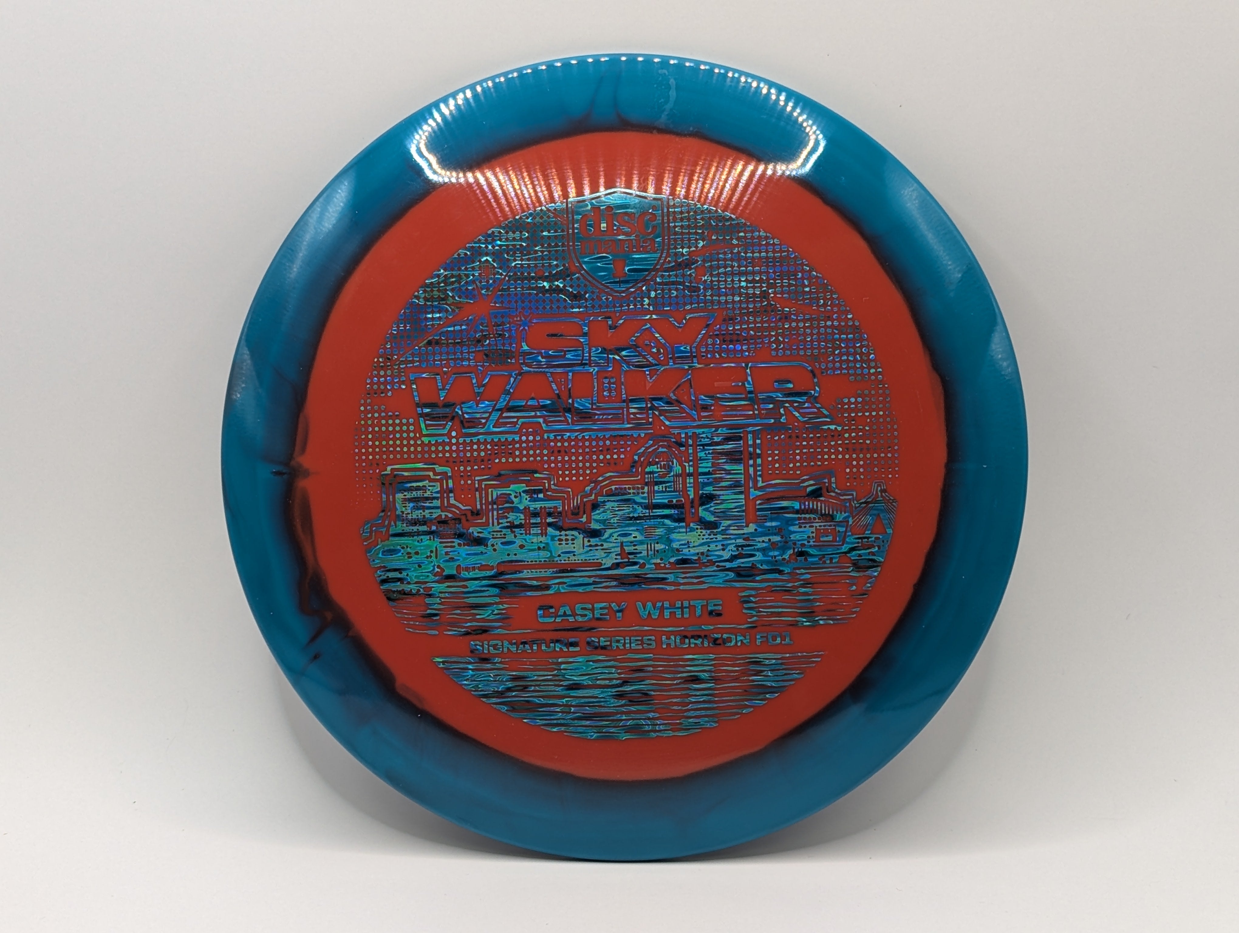 One of our most popular reinvented fairway molds gets a blast of color with Casey White’s first official Signature Series disc, the Horizon FD1! This trusty mold has been leaned on by many as one of the most reliable discs we’ve added to the lineup and the addition of Horizon plastic lends another shot making option to your arsenal. Compared to the stock C-Line versions, the Sky Walker is going to feel slightly closer to the FD2 of the past but not quite a direct comparison. You will throw it straighter with less effort, notice a touch more glide, and a little more grip to the plastic. Pair a Sky Walker and C-Line FD1 together and they will make an incredible combination!