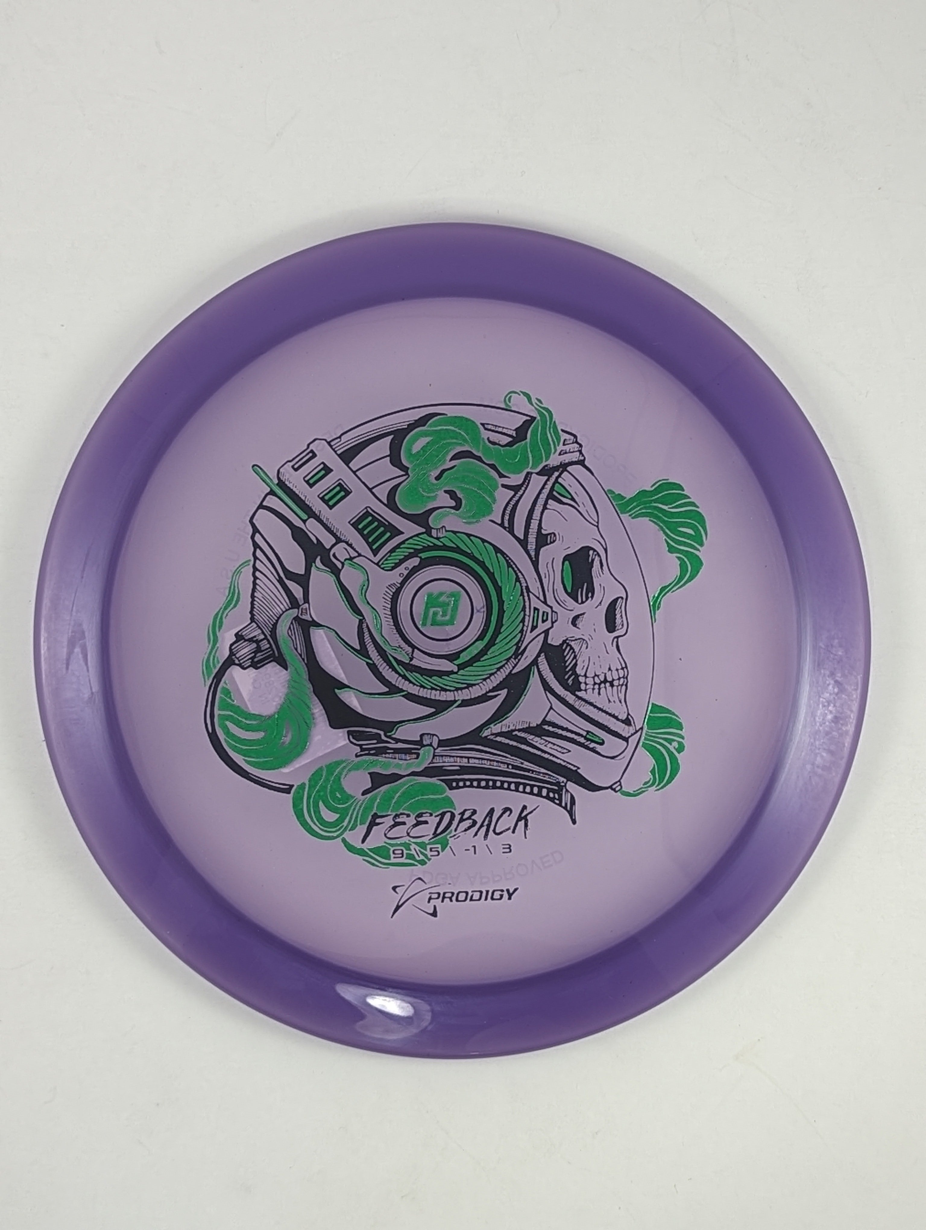 The Feedback is an overstable fairway driver developed with Kevin Jones as part of the Prodigy Collabs Series. As controllable of a disc as they come, the Feedback can hold a line with little movement left-to-right for the majority of its flight before a dependable fade helps you hit your landing spot. It can withstand a windy day and players will notice a broken-in feel fresh from the factory.