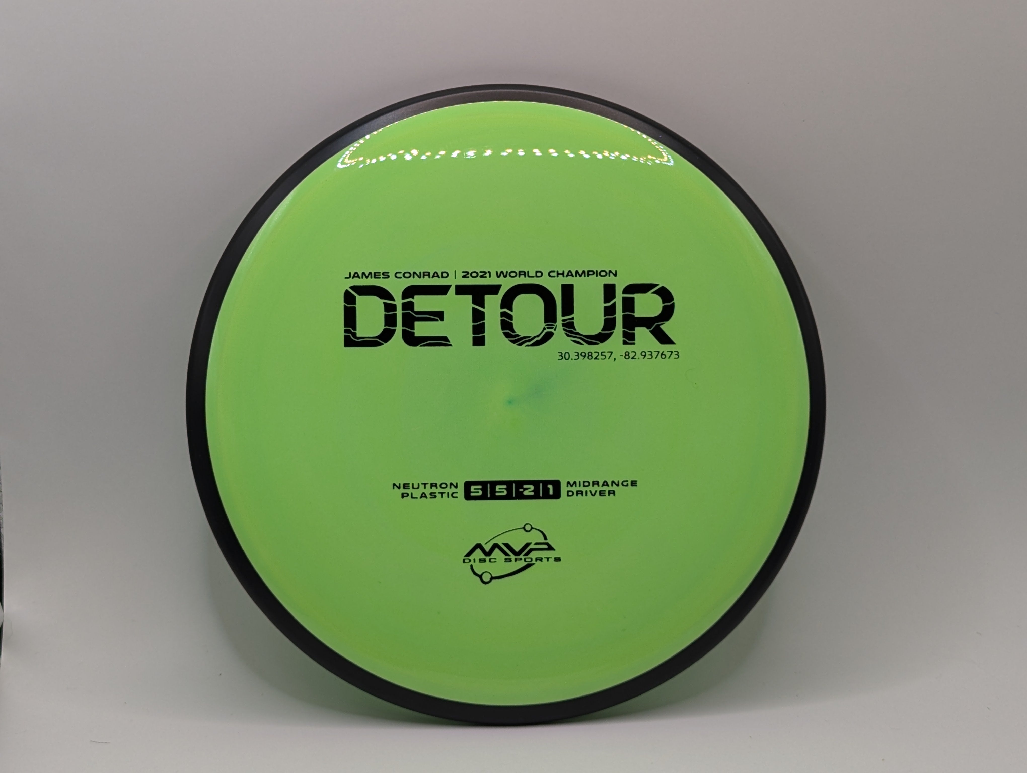 Fitting perfectly between the Axiom Hex and MVP Uplink, the newest addition to the James Conrad lineup slides in. As a backhand dominant player, Conrad is known for his beautiful turnover lines, and the Detour excels at those long panning turnovers as well as easy hyzer-flips. Experienced players will find the Detour to be exceptionally easy to manipulate for a wide variety of shot shapes, while newer players will find a delightfully straight flier, perfect for learning the game