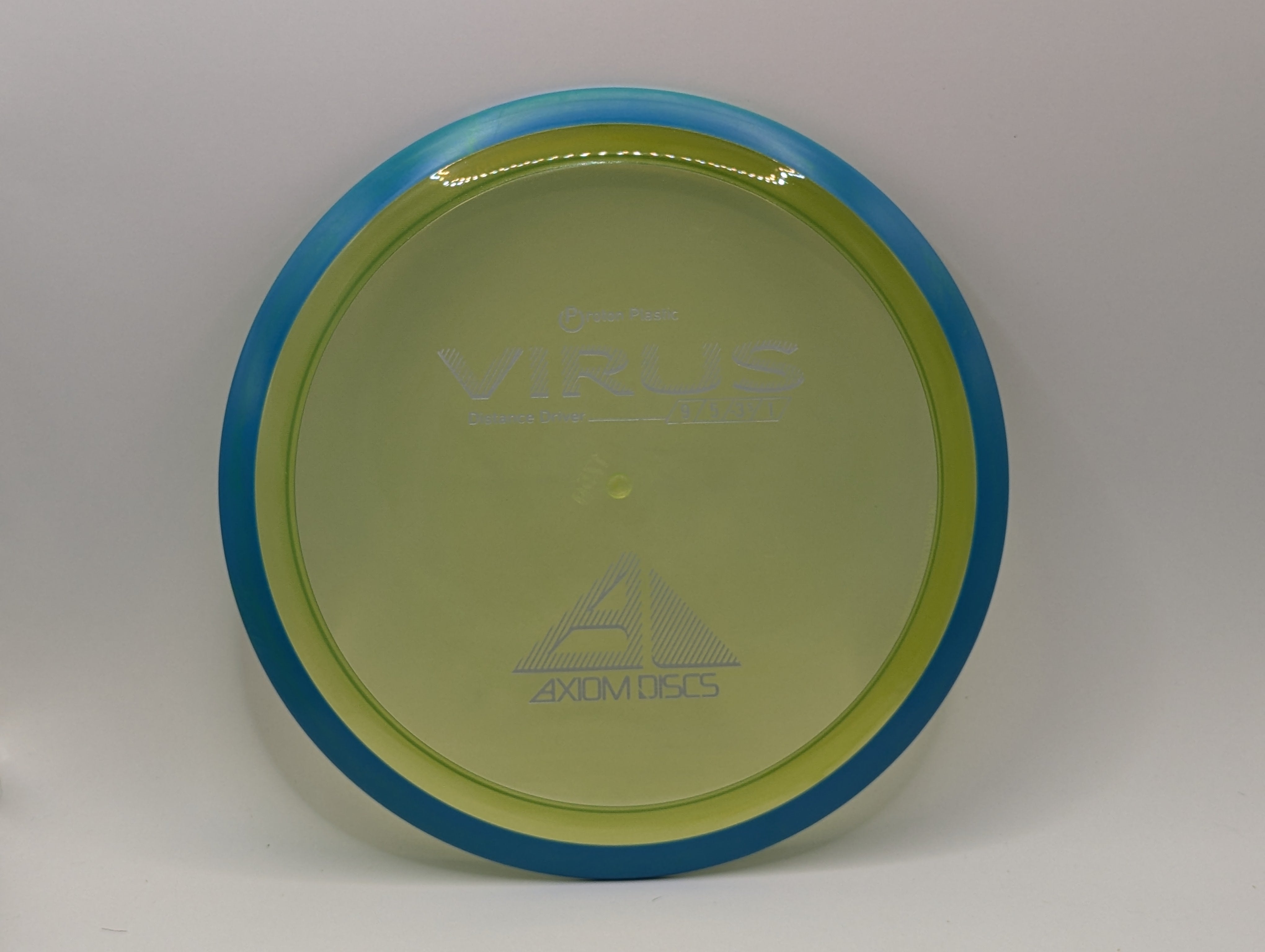The Virus is an understable distance driver. The Virus is Axiom’s easiest to throw distance driver, with a glide and responsive understability that keeps it in the air. Power throwers will be able to flex huge turnover shots with straight forward fade. Average throwers will be able to extend and shape lines using the Virus’ turn and gentle fade. Compared to the MVP lineup, the Virus resembles a worn-in Impulse