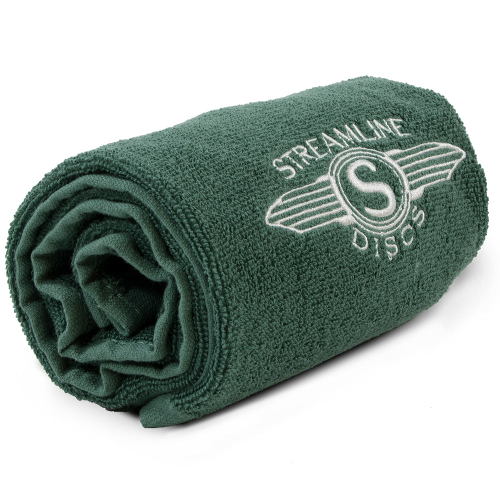 This Streamline Towel is a must-have for disc golf enthusiasts. Perfect for keeping your discs dry, this towel is as functional as it is visually striking.